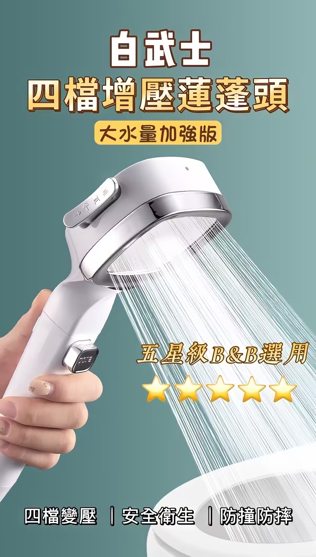 12分鐘前四檔調節【白武士增壓蓮蓬頭】會馬殺雞的蓮蓬頭 沖掉一天的疲憊 - 買一送一【2入組】免運 僅需 -NT$1080