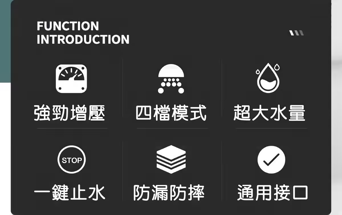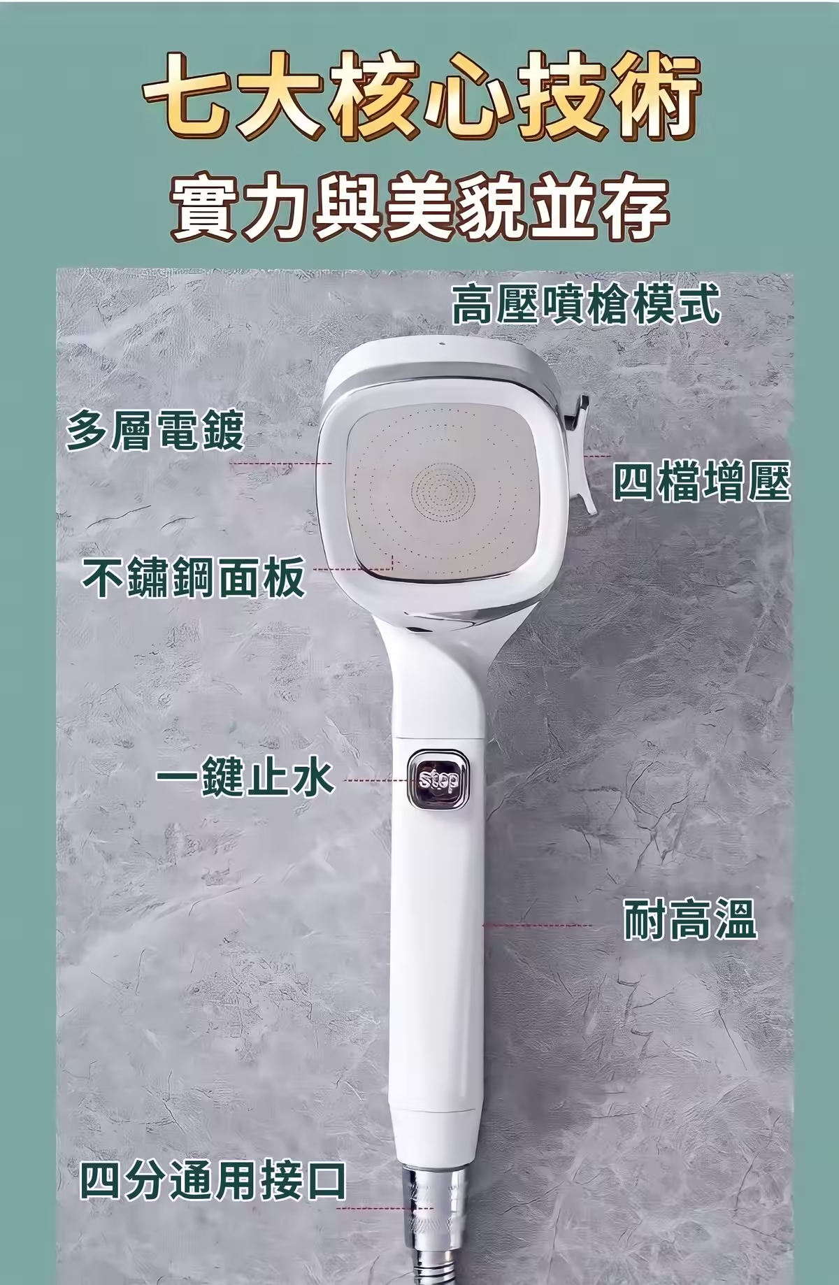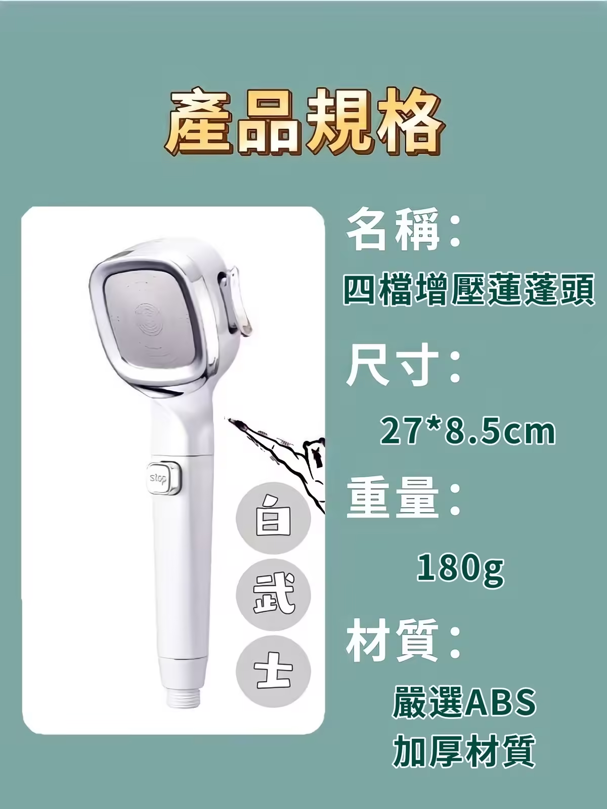 5分鐘前四檔調節【白武士增壓蓮蓬頭】會馬殺雞的蓮蓬頭 沖掉一天的疲憊 - 活動體驗【1入組】699+運費80 -NT$779