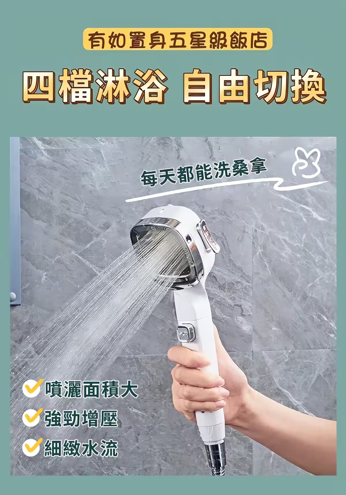 4分鐘前四檔調節【白武士增壓蓮蓬頭】會馬殺雞的蓮蓬頭 沖掉一天的疲憊 - 活動體驗【1入組】699+運費80 -NT$779