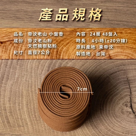 25分鐘前帝汶老山小盤香 正台灣製造【杏美製香HM】 老山小盤 老山環香 防蚊香 帝汶老山 - 優惠價【買二送二】送(送蚊香盒1個)NT$888