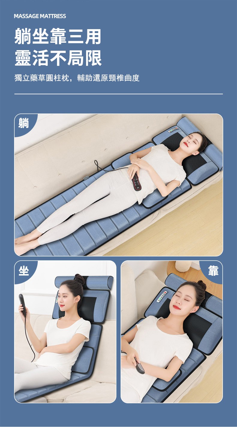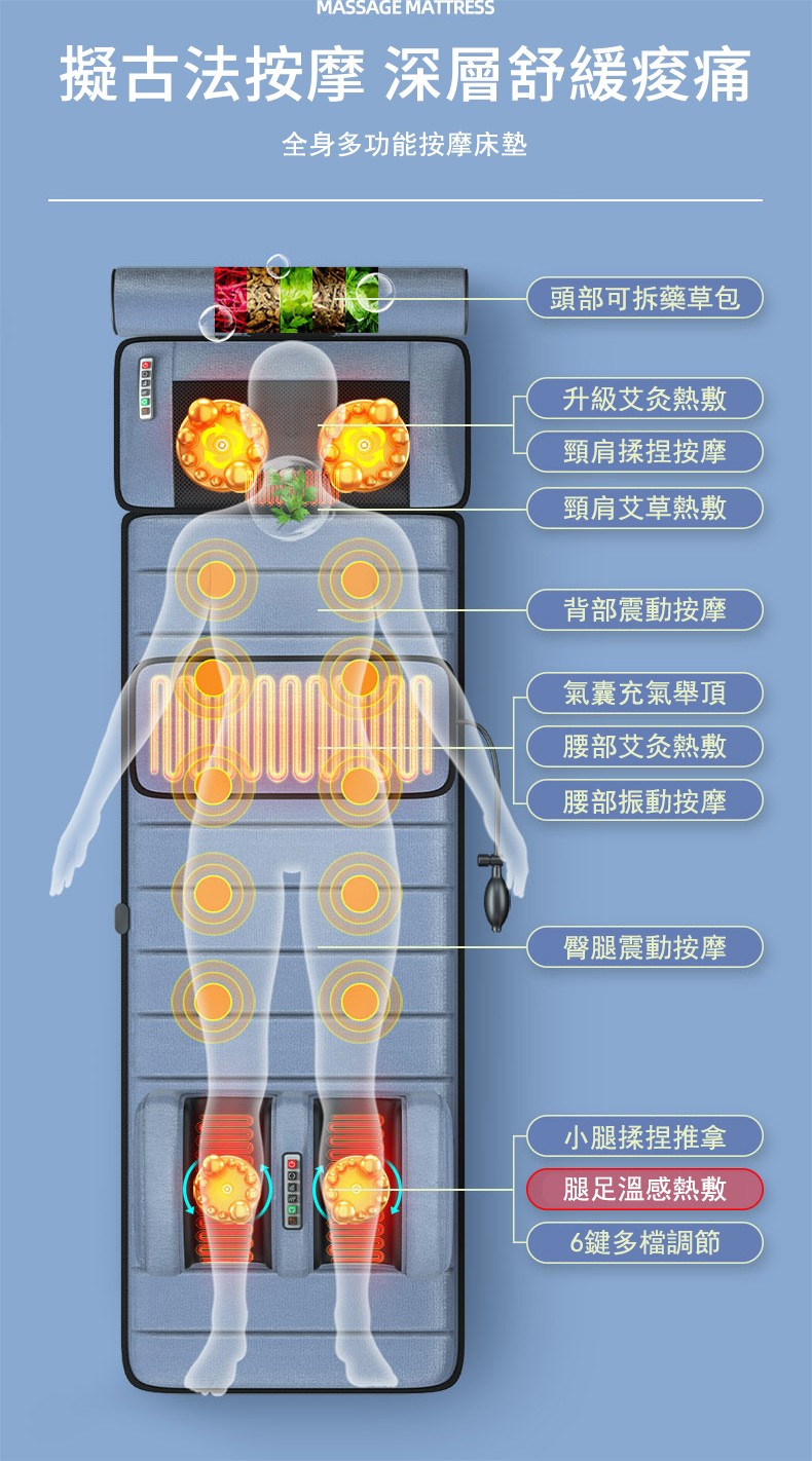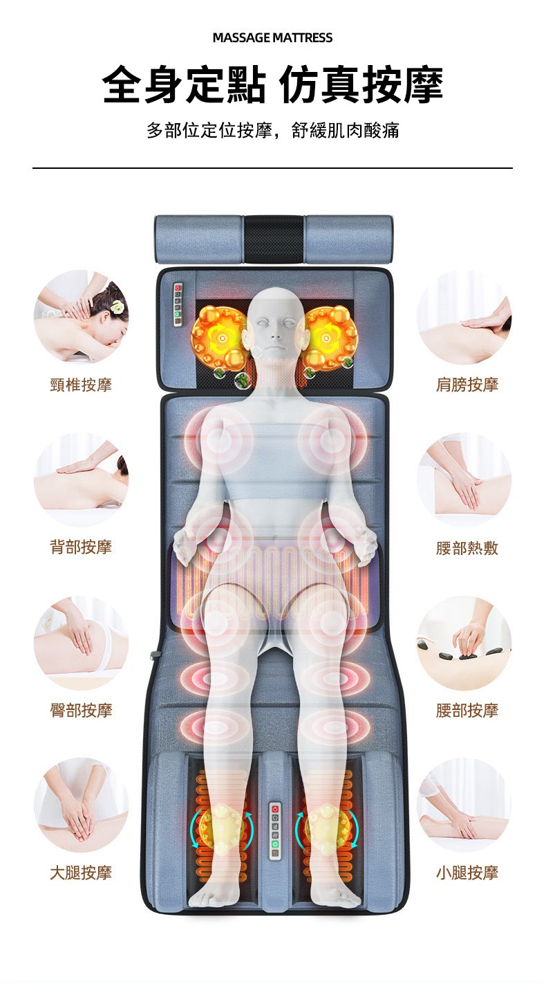 5分鐘前多功能全身按摩床墊 | 電動加熱頸椎、腰部、背部、腿部全方位按摩器,舒緩身心疲勞 - 6鍵旗艦款(6鍵揉捏+震動+氣囊+10電機+腰部熱敷)