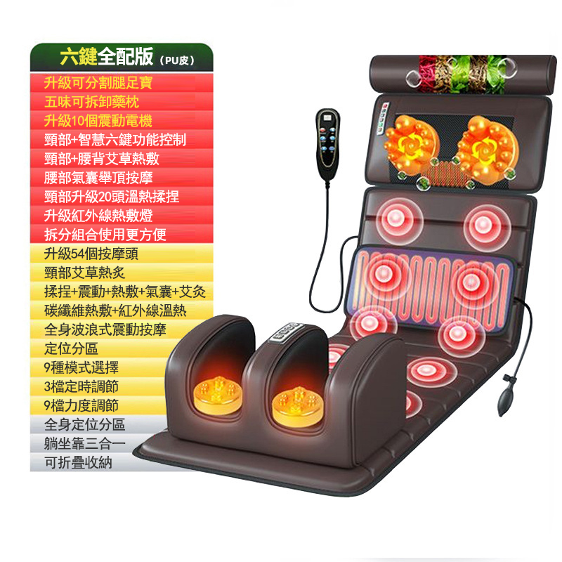 5分鐘前多功能全身按摩床墊 | 電動加熱頸椎、腰部、背部、腿部全方位按摩器,舒緩身心疲勞 - 豪華皮質款五合一可拆卸(藥枕+頸部滾輪+震動加熱+【腿部加熱揉捏】)