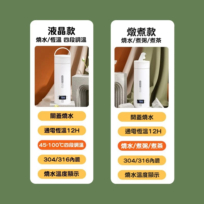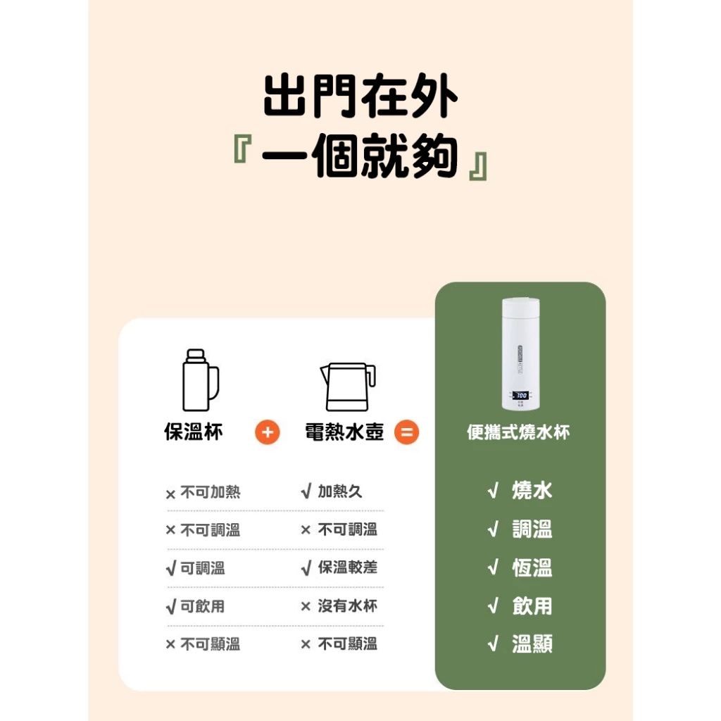 20分鐘前便攜式電熱水杯 一體燒水杯 旅行家用宿舍小型迷你電加熱開水杯,輕鬆喝到健康的水,以質感款待生活~ - 【心動體驗】一入組 NT$ 1099