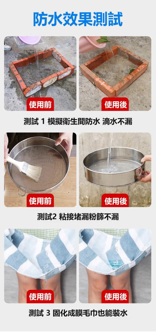 4分鐘前【廠家限時鉅惠】【一塗止漏】透明防水膠塗料300cc一桶可刷1-2坪, 外墻、陽臺、屋頂、瓷磚、屋内都可以通用 - 【一塗止漏】買二送一 3入組 NT$998