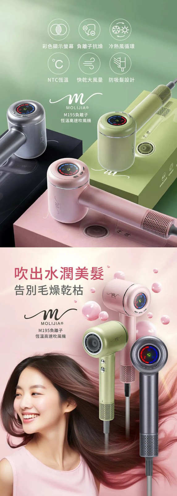 5分鐘前M195 負離子恆溫高速吹風機 乾髮護髮,一次搞定 - 優惠價一入組NT$1398