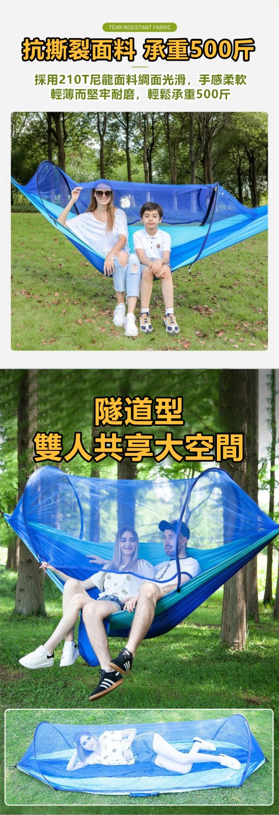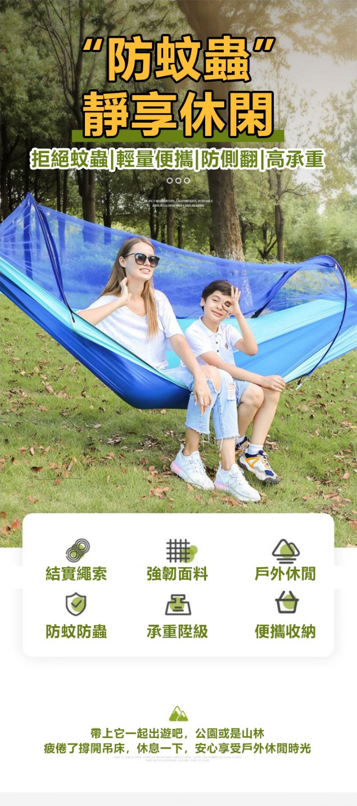 2分鐘前全自動速開戶外帶蚊帳吊床 - 【限時下殺】承重700公斤 速開蚊帳吊床【帶蚊帳 三米綁繩 8號扣】/2入組NT$2098